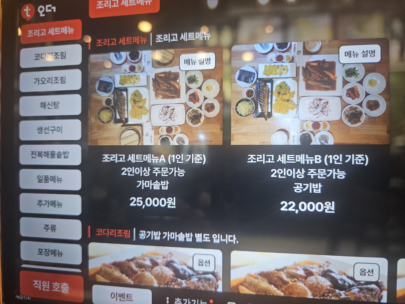 평택 맛집 조리고는 메뉴가 아주 다양해서, 다양한 메뉴를 맛보고 싶은 분은 세트도 괜찮은 것 같아요
